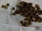 しばーらくして、やっと欠片の糞が8粒ぐらい出る。